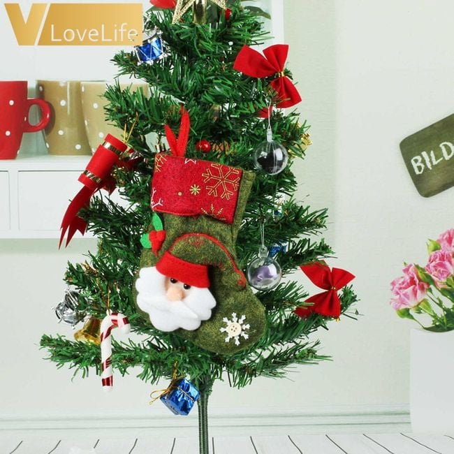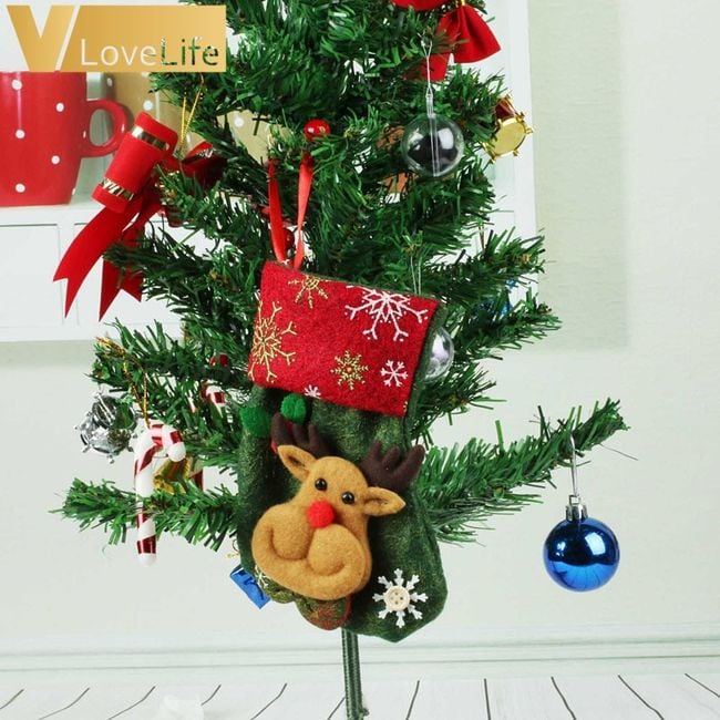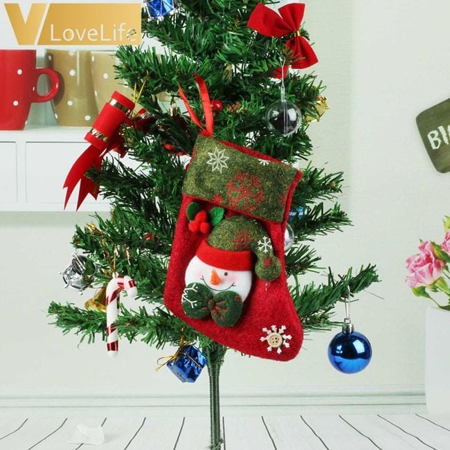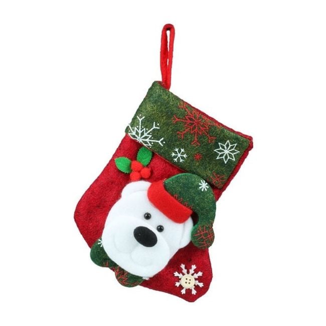La pequeña media navideña es ideal como decoración. También puedes usarla para regalar pequeños obsequios.