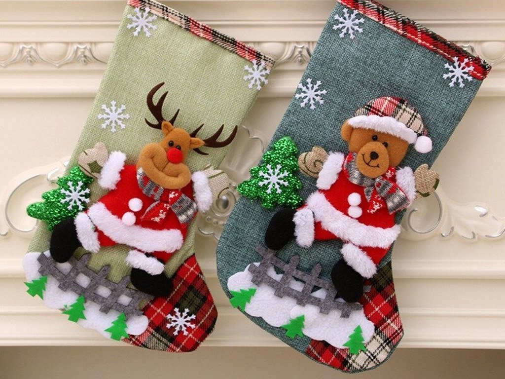 ¿Qué regalos les traerá este año el Niño Jesús? Cuelga calcetines navideños con varios motivos de Santa, un muñeco de nieve, un reno y un osito sobre la chimenea o en una estantería.