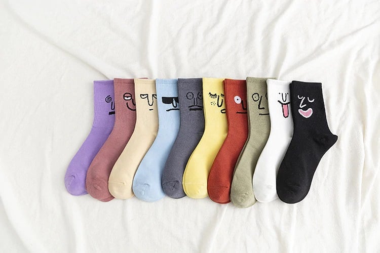 Calcetines de colores para mujer con caras. Un regalo divertido genial.