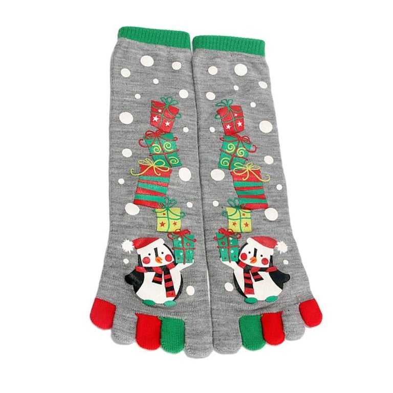 Estos calcetines navideños son de diseño de dedos.