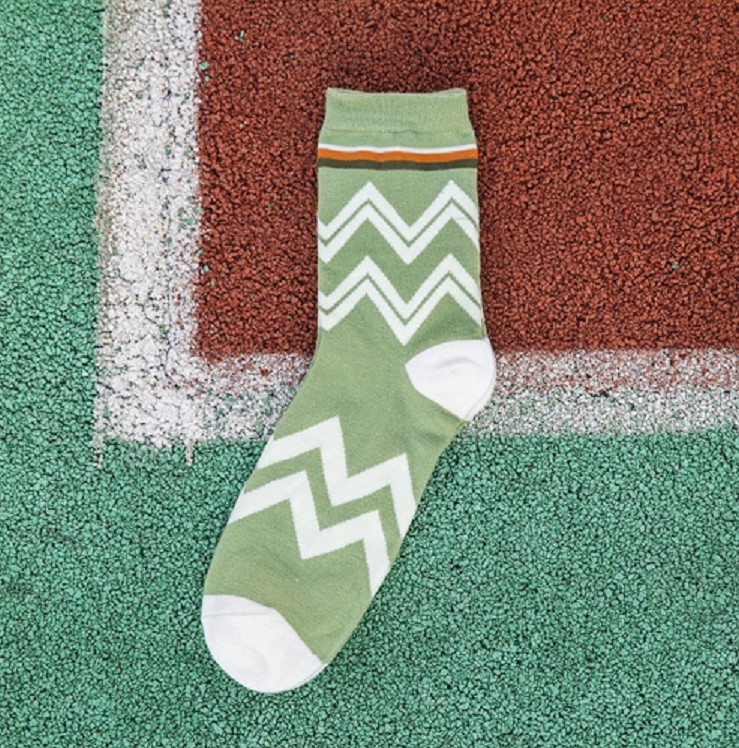 Los calcetines tienen un patrón de zig zag y son muy cómodos.