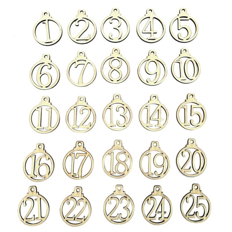 Un calendario de Adviento inusual - números de madera colgantes (números del 1 al 25).