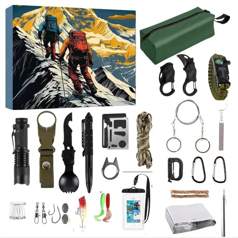 - 24 utensilios de supervivencia en la naturaleza en un práctico embalaje de regalo