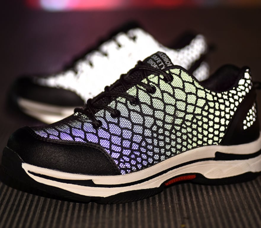 Los zapatos son reflectantes por la noche.