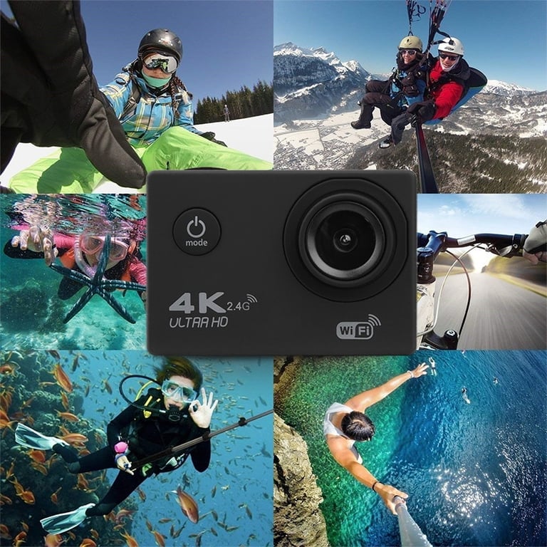 • Cámara con grabación de alta calidad, cámara Ultra HD con pantalla LCD de 2 pulgadas y construcción a prueba de agua, que captura los momentos más atractivos y los momentos deportivos más interesantes.