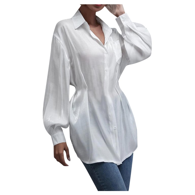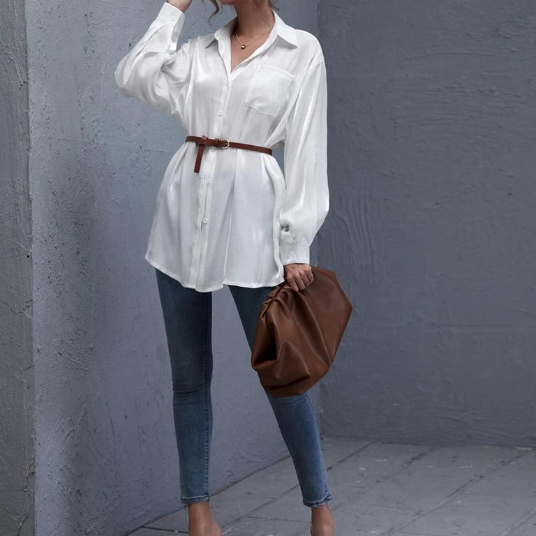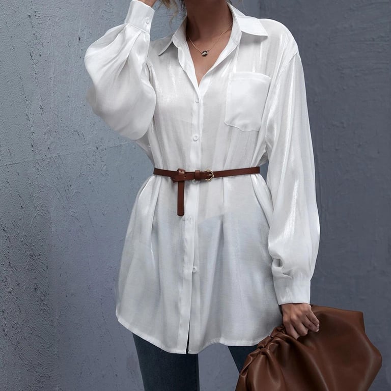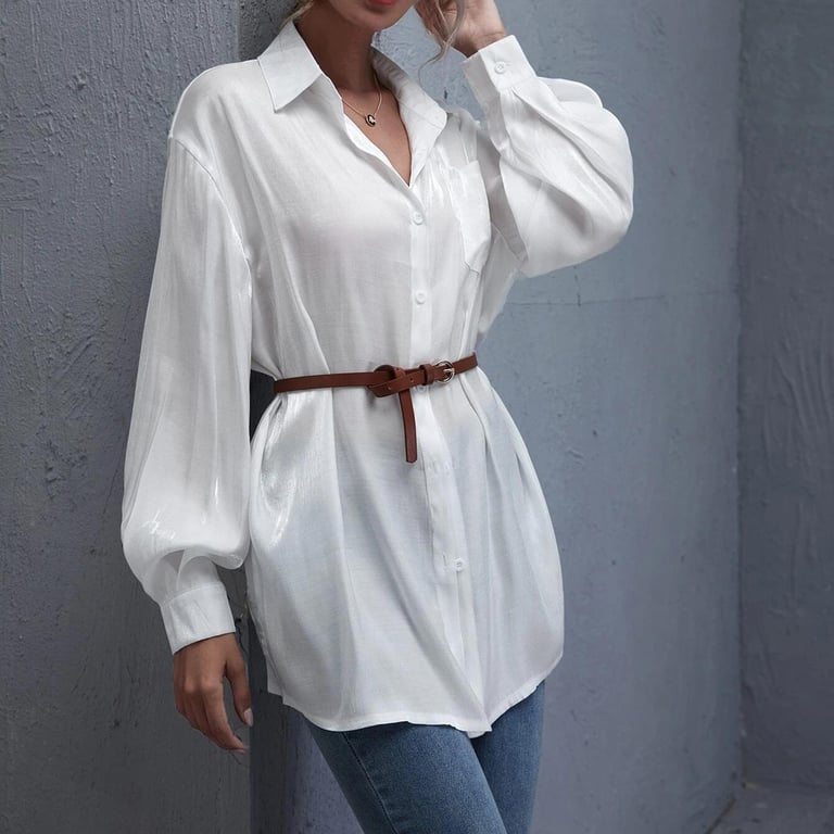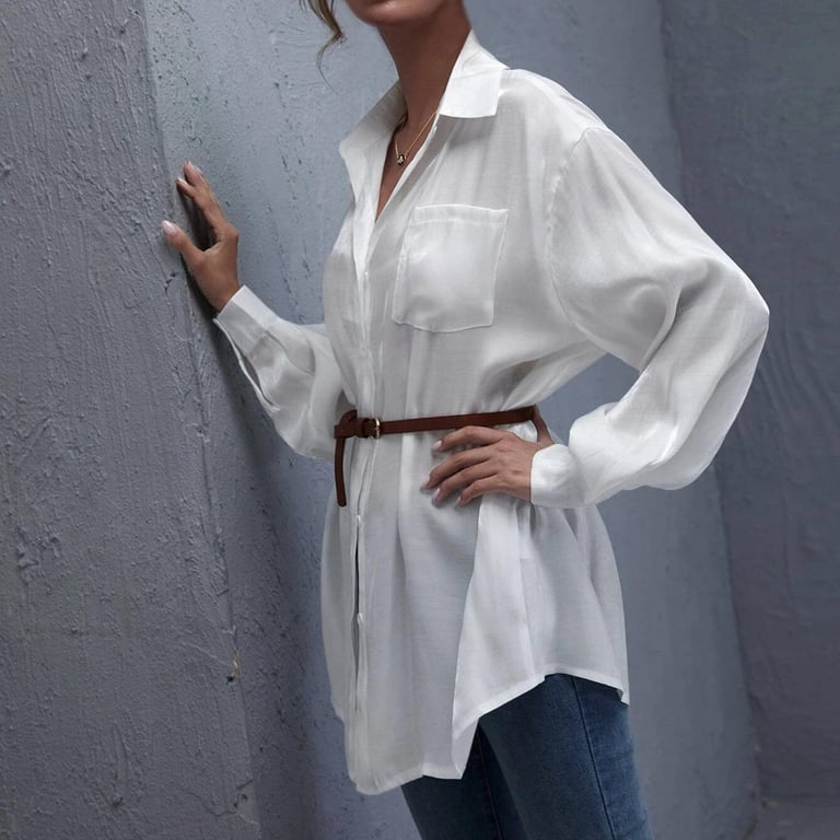 • Etiquetas: camisa de mujer, camisa, blanca, suelta, larga, botones, manga larga, bolsillo