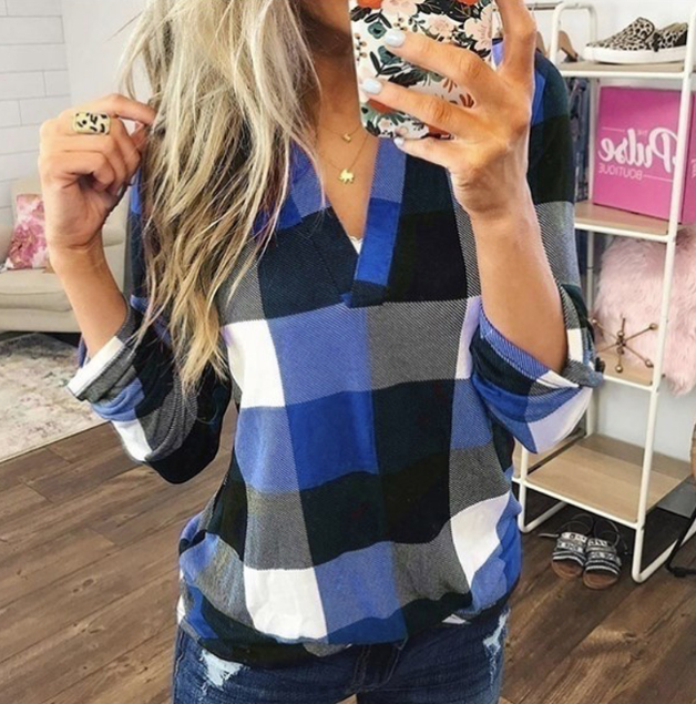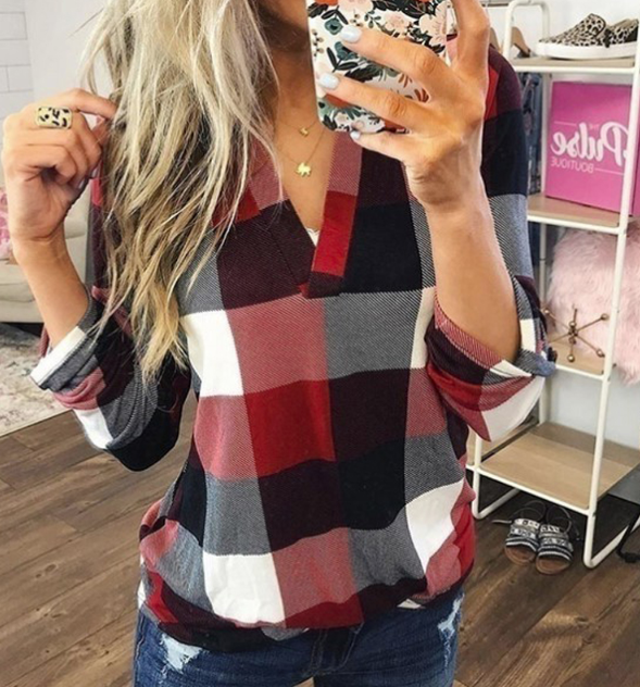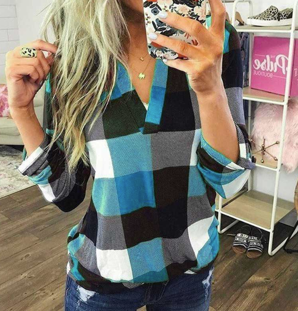Camisa de cuadros casual para mujer con botones