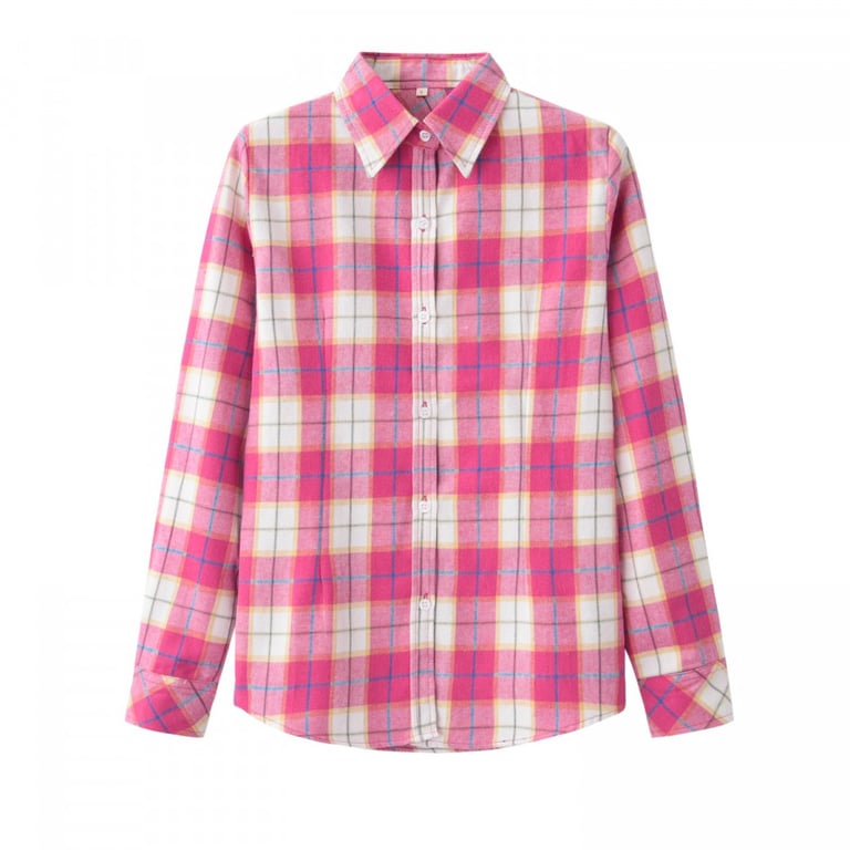 Camisa de mujer con cuello y manga larga. La camisa tiene cierre de botones y un patrón de cuadros. Disponible en muchas variantes de color.