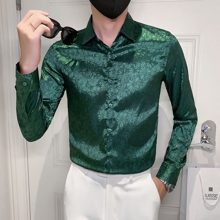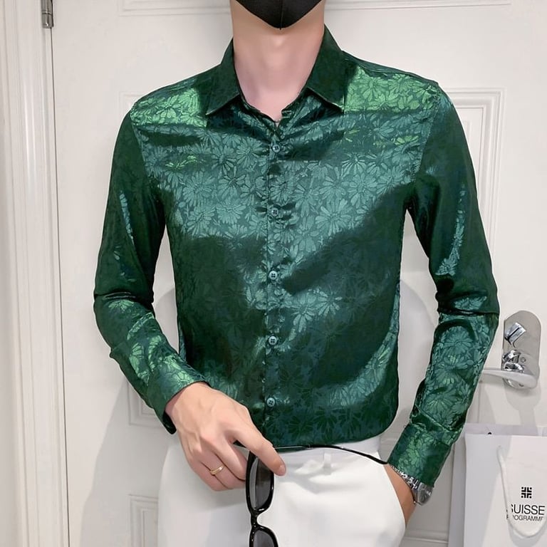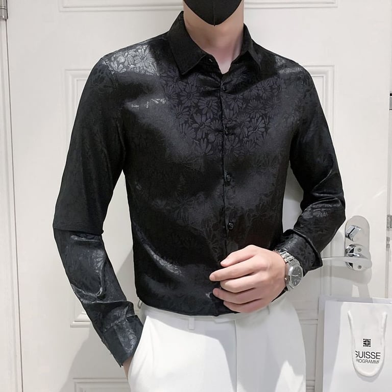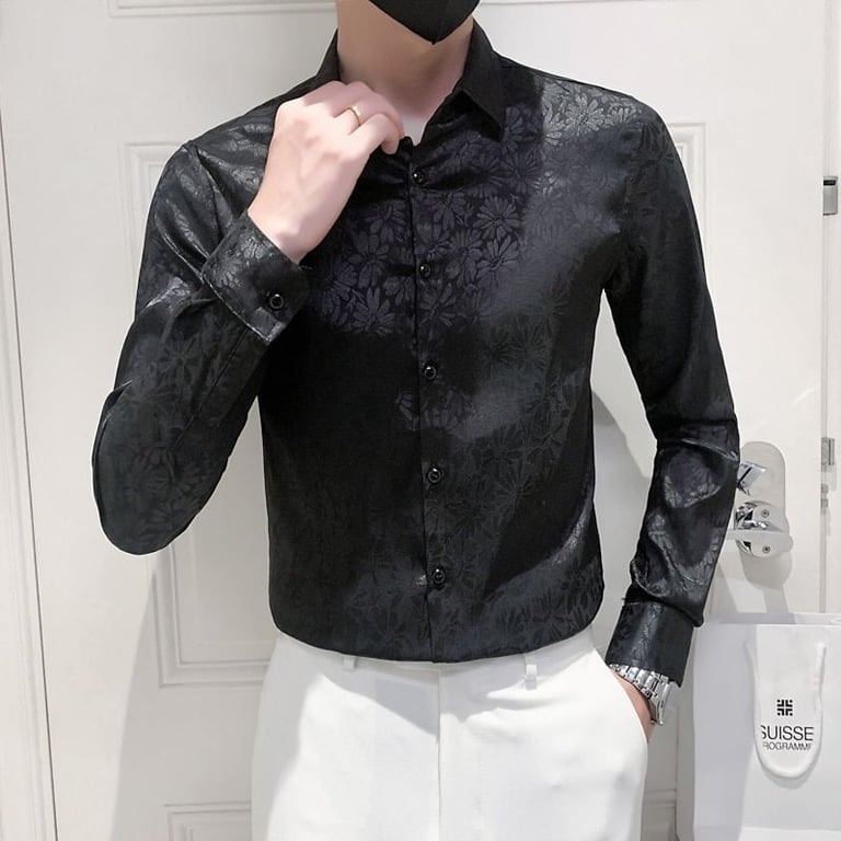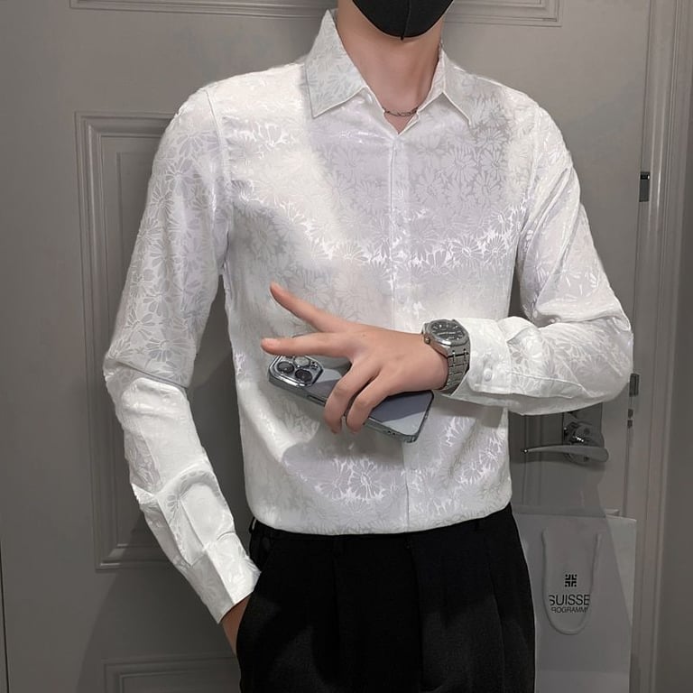 La camisa de damasco para hombres modernos está hecha de un material muy agradable.