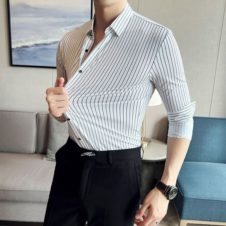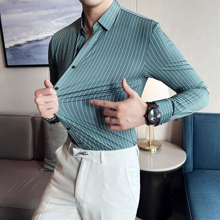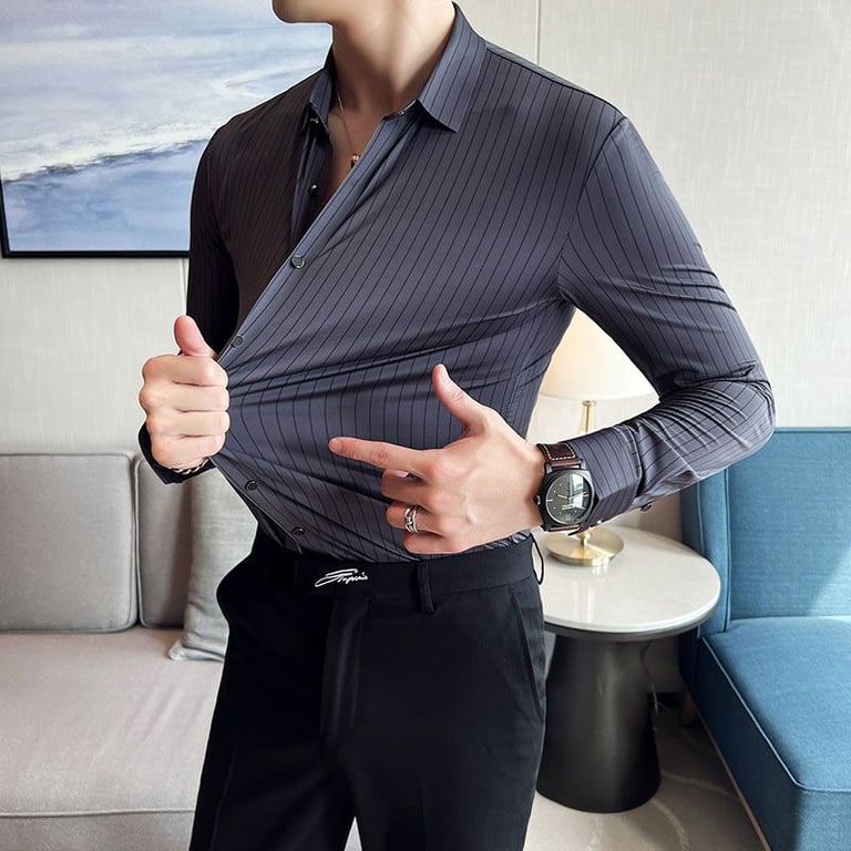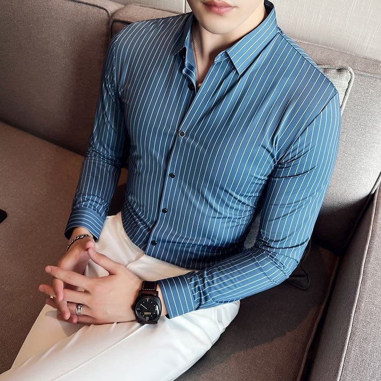 Las finas rayas en la camisa le dan un aspecto lujoso.