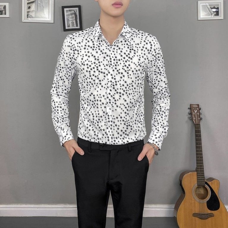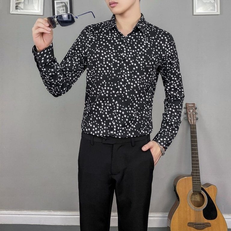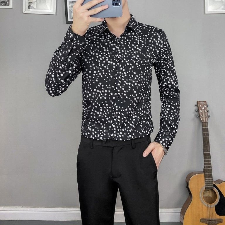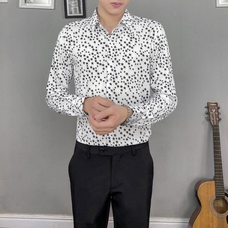 Camisa de hombre estilosa con estampado de estrellas en contraste Trevor