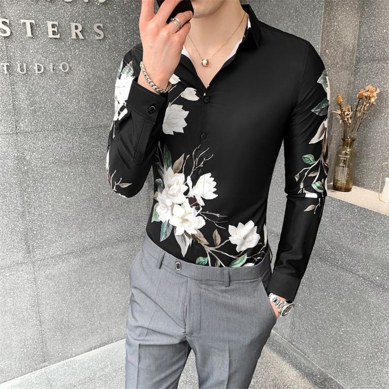 Camisa de estilo masculino con estampado de flores Oscar