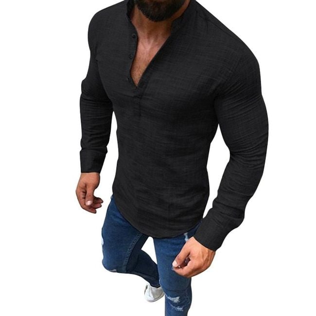 La camisa de hombre de manga larga cuenta con un cierre de botones en la zona del pecho. Elija entre 4 colores.