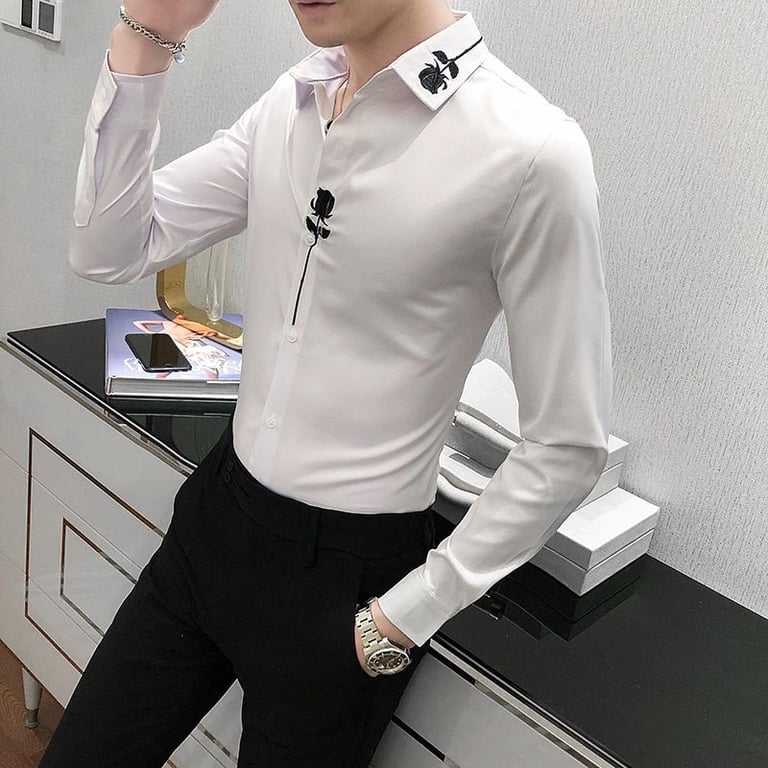 Camisa de lujo para hombre con bordado de rosa en contraste Crawford.
