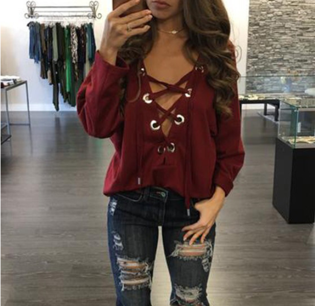 Camisa de mujer con cordones en el escote, camisa en varios colores.