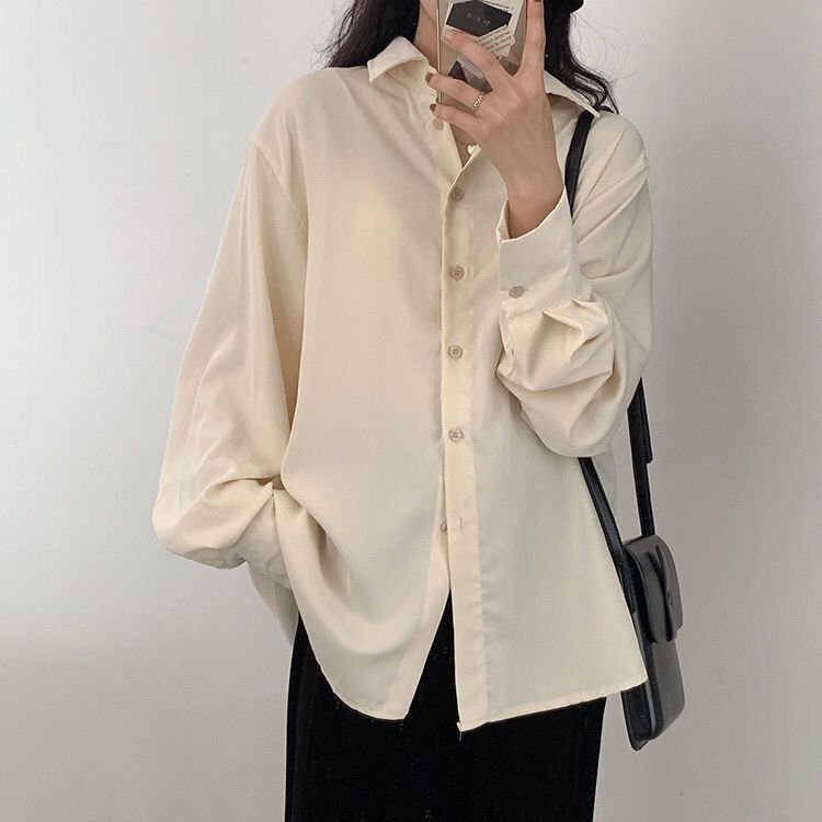 Camisa retro de mujer de corte suelto con mangas largas.