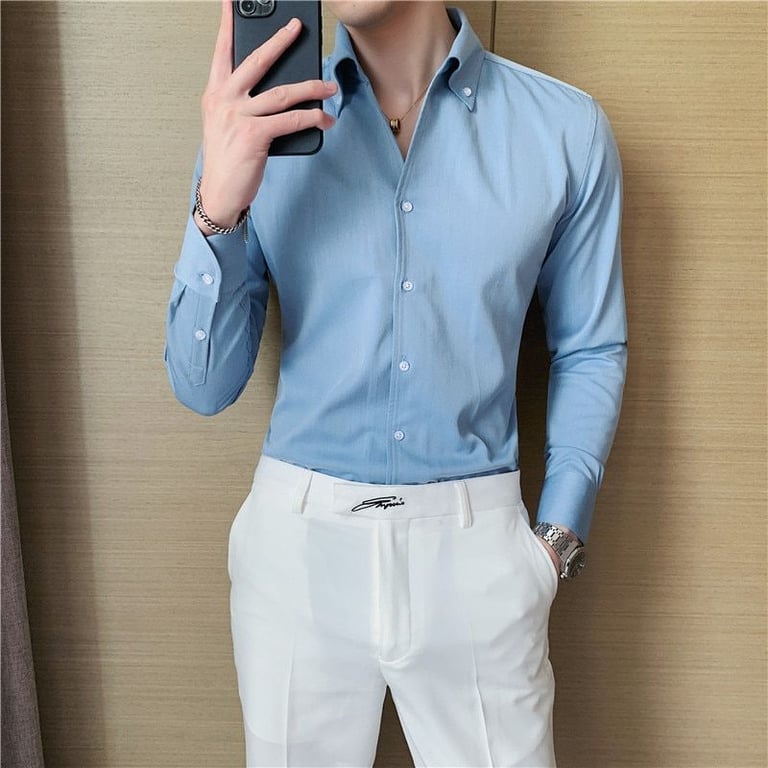 Camisa moderna de hombre lisa de manga larga Santiago