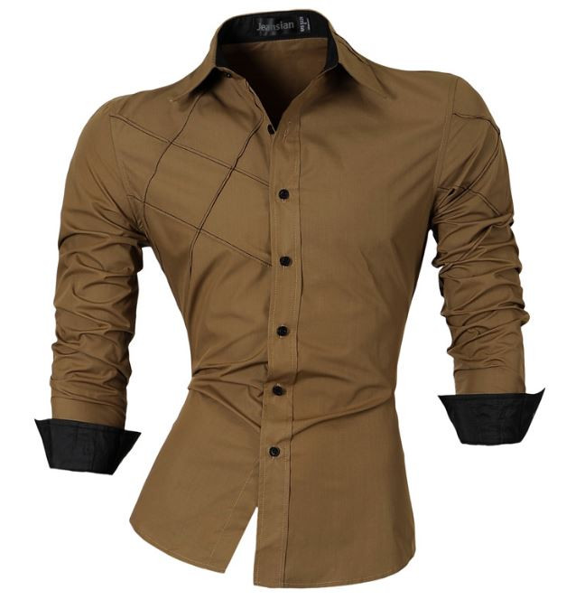 Camisa original de estilo masculino en color caqui con detalles en negro.