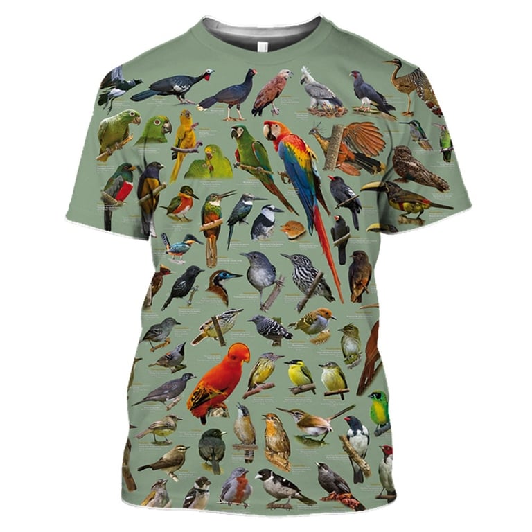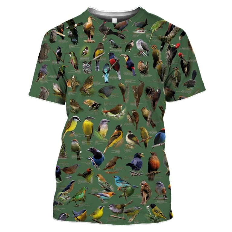 Camiseta 3D de manga corta con estampado de pájaros