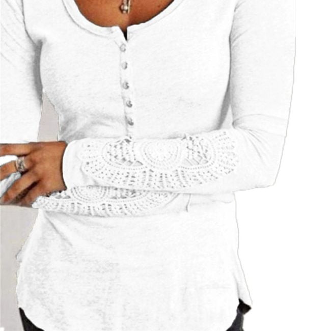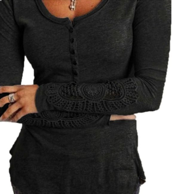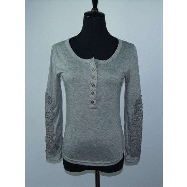 Las mangas largas de esta camiseta de un solo color están adornadas con encaje.