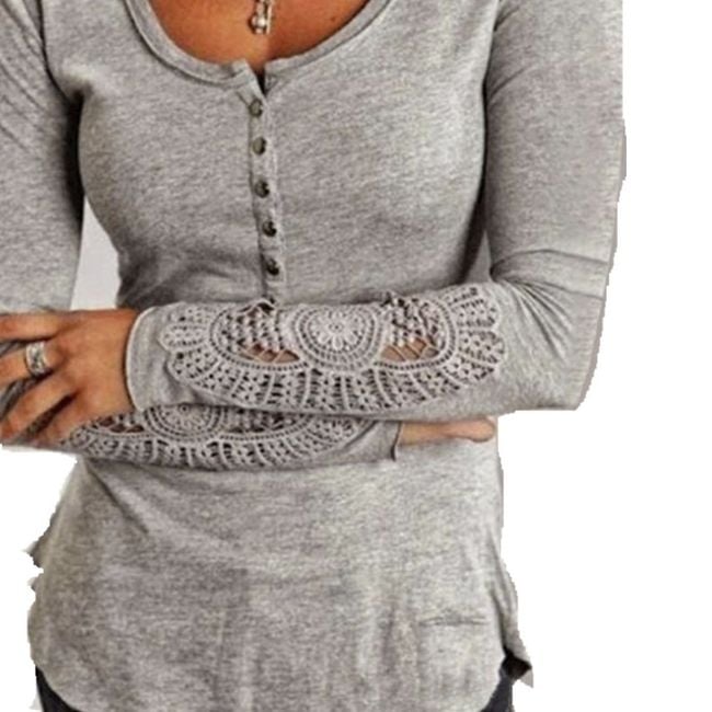 Camiseta con mangas de encaje - gris