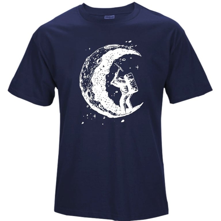 Tenemos esta hermosa camiseta de estilo que representa a un astronauta golpeando la luna con un pico.