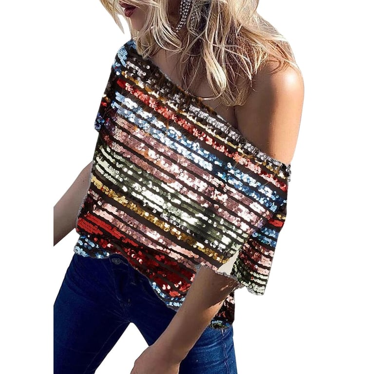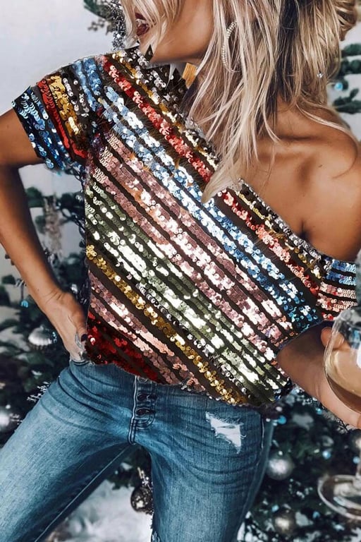 Camiseta de fiesta asimétrica para mujer con lentejuelas Sanders.