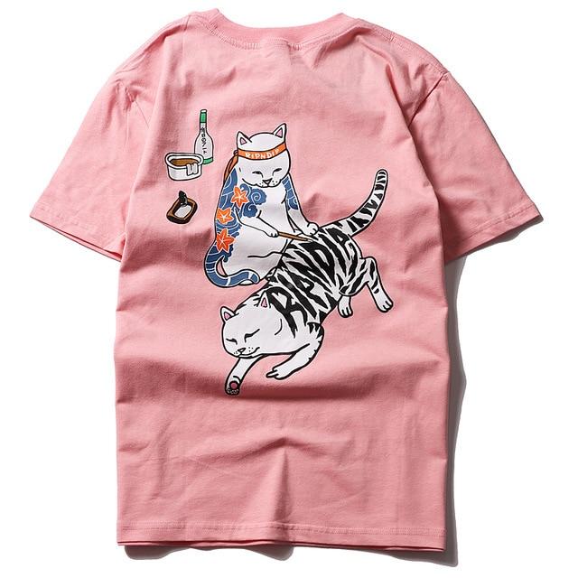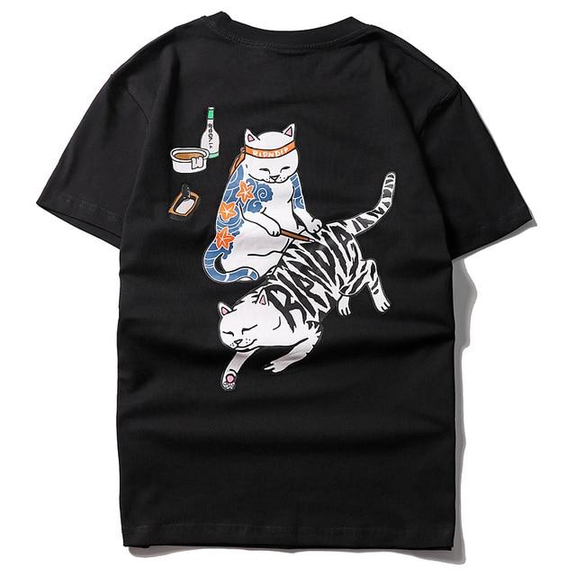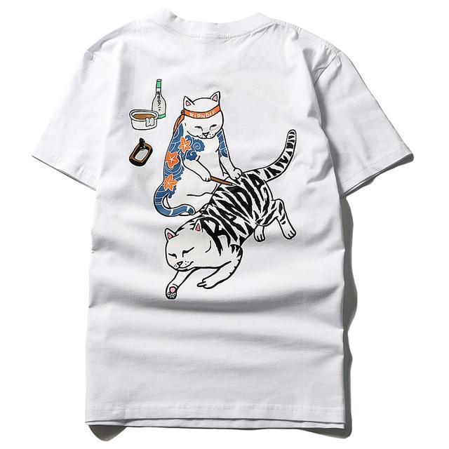 Camiseta de algodón para hombre con imagen de un gato. Estilo muy original. Disponible en varios colores.