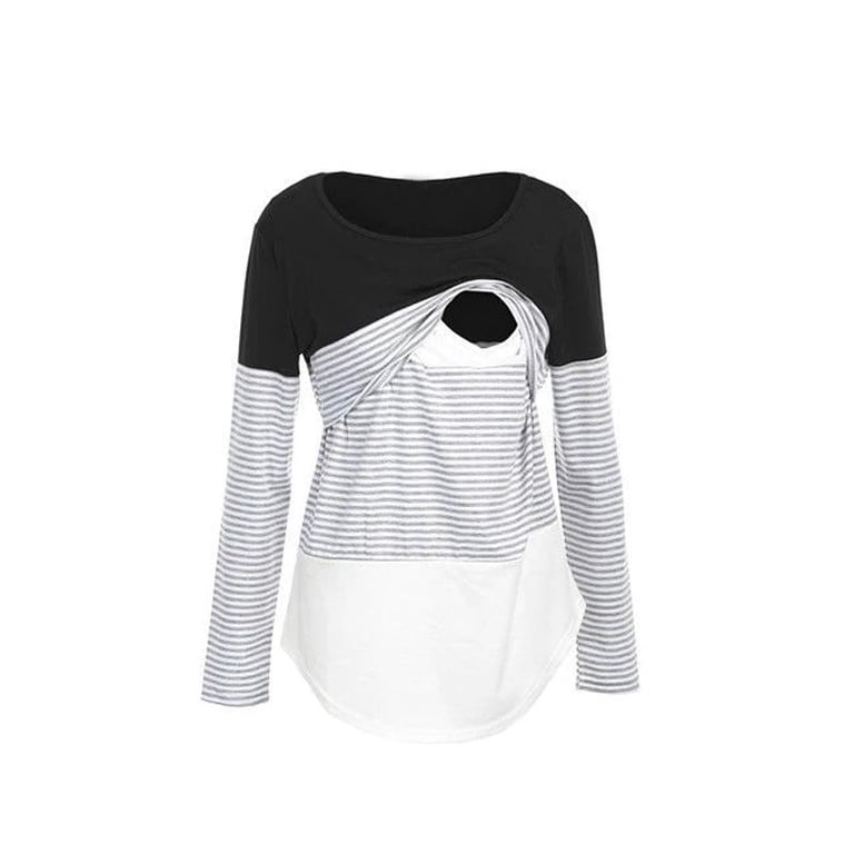 Camisa de maternidad de mujer con manga larga y escote redondo. Corte holgado y cómodo. Patrón a rayas. Disponible en varias opciones de color.