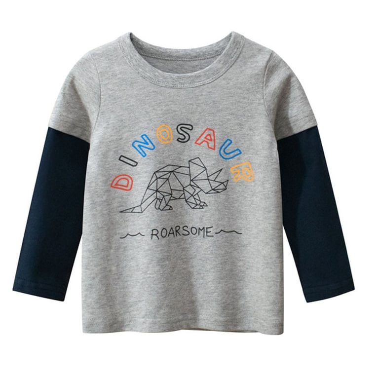 • Renueva el armario de tus hijos con una camiseta de estilo deportivo de mangas largas y estampado de dinosaurio.