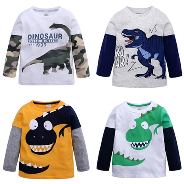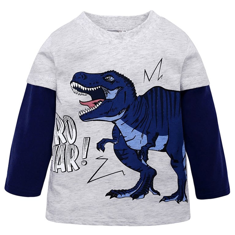 Camiseta de moda para niño de manga larga con estampado de T-Rex.
