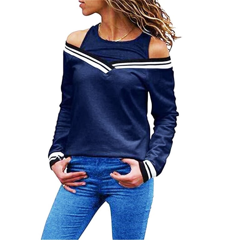 Camisa de mujer de manga larga con escote y hombros al descubierto. Con top interior cosido. Corte recto y suelto. Disponible en varias opciones de color.