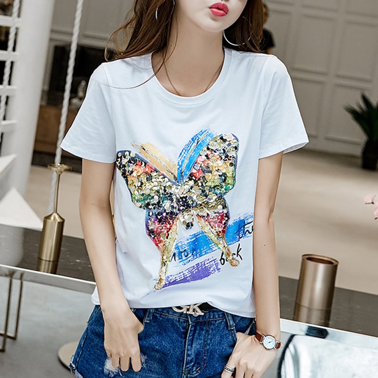 Camiseta con un elegante diseño de mariposa para cada mujer. Compra cosas hermosas a precios increíbles.