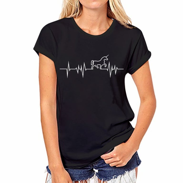Camiseta de mujer Anelis con unicornio - negra
