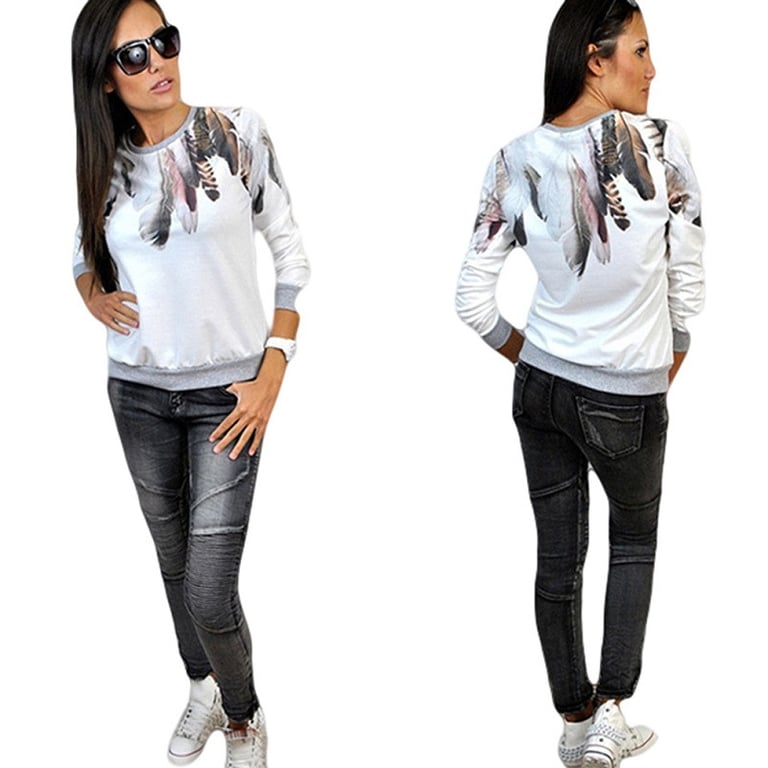 Inusual camiseta de mujer con motivo de plumas.