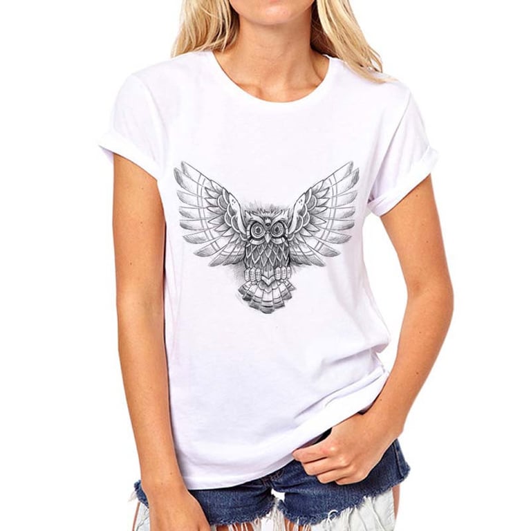 ¡Una camiseta estilosa con un búho, en la que te verás genial! ¡Los patrones originales están de moda, así que asegúrate de tener uno en tu armario!