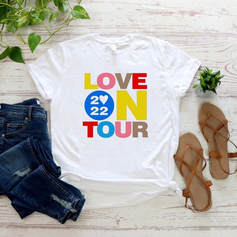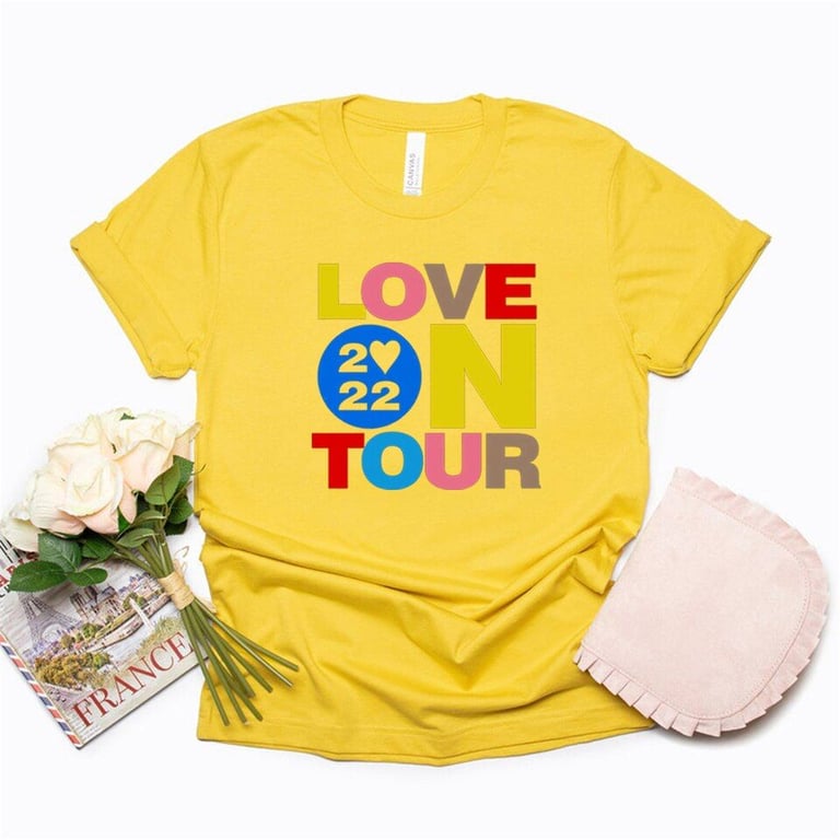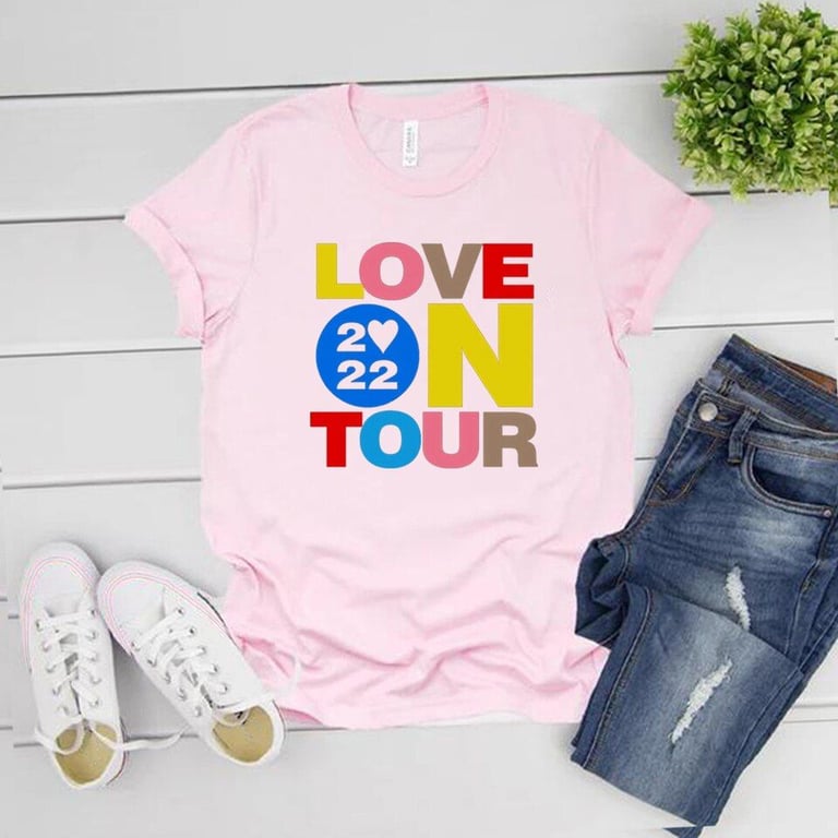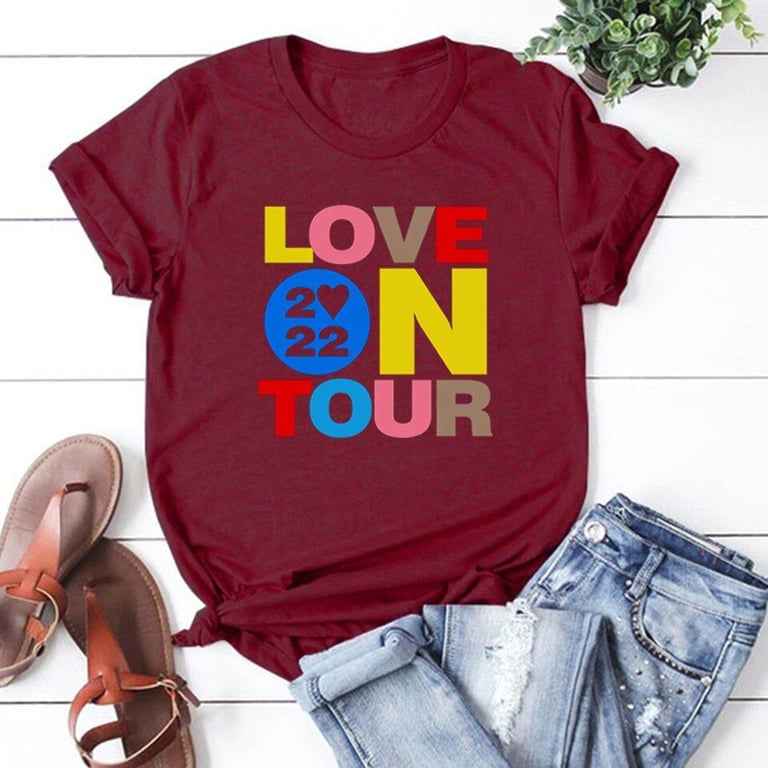 Camiseta de mujer de estilo moderno con manga corta y estampado "On Tour 2025."