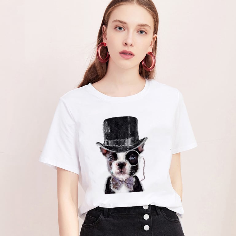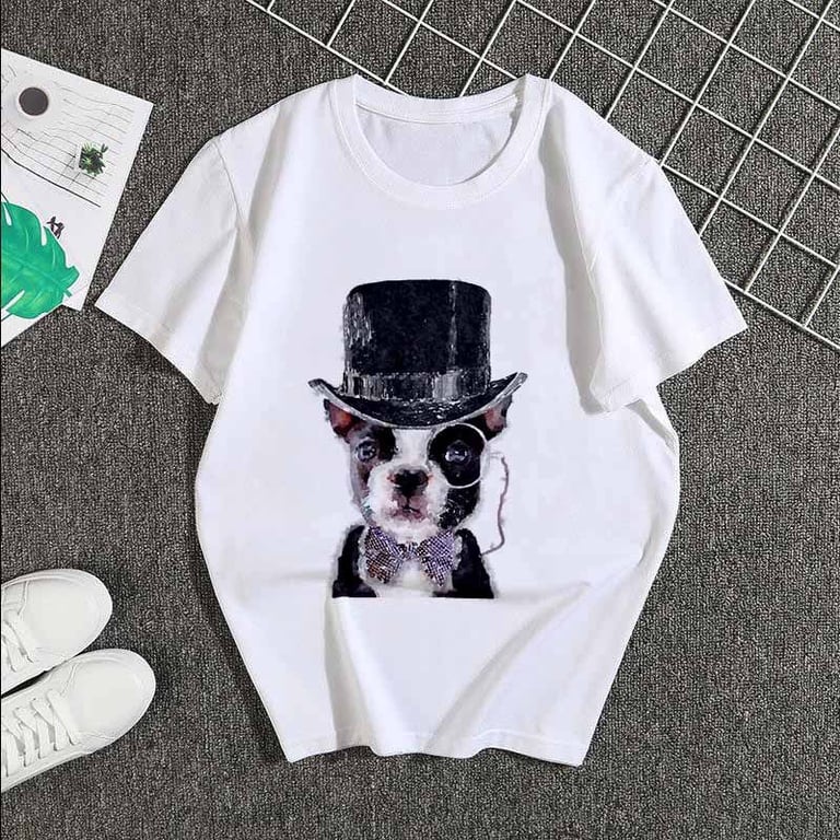 Camisa de mujer de manga corta. Impresión a color en la parte delantera. Corte holgado con escote redondo.