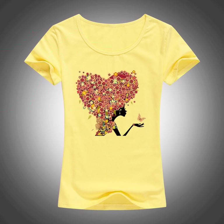 Camiseta de mujer con estampado de corazón - amarilla
