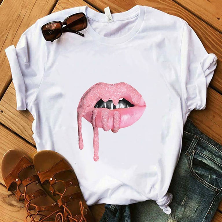 Camiseta blanca de mujer con mangas cortas y cuello redondo. Impresión de color original en la parte delantera. Corte holgado.
