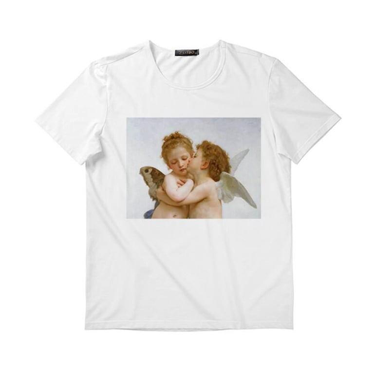 Camisa blanca de mujer con estampado colorido en la parte delantera. Corte holgado oversize con mangas cortas.