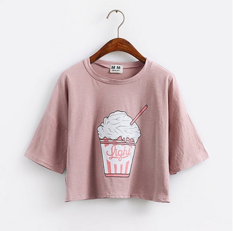 Hermosa camiseta con un diseño veraniego de helado, de manga corta y a la cintura.