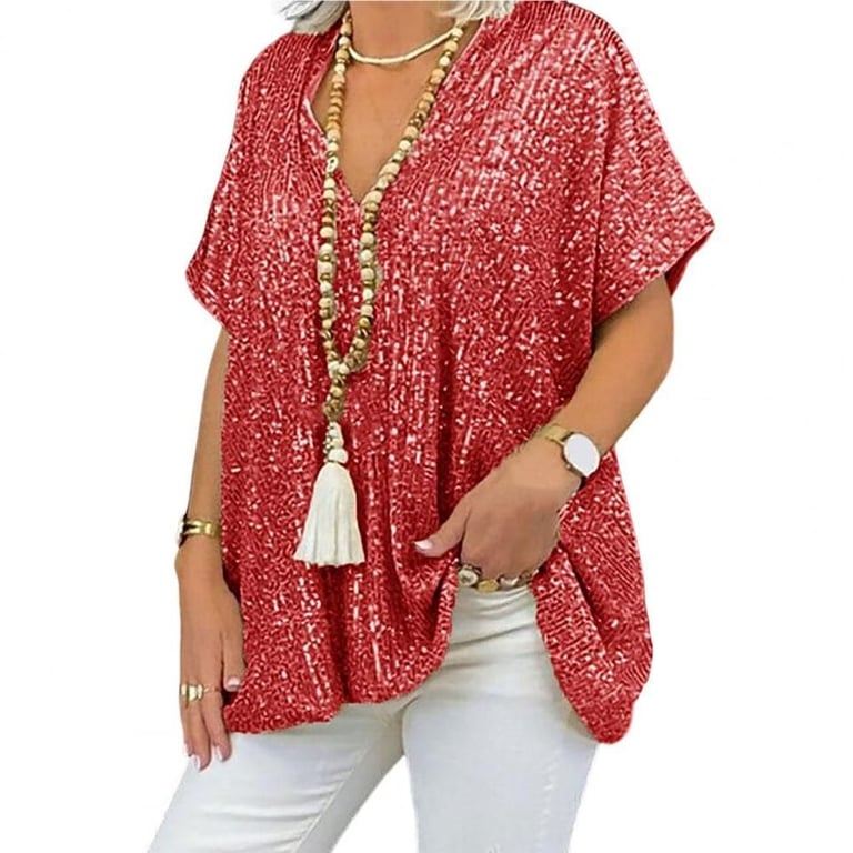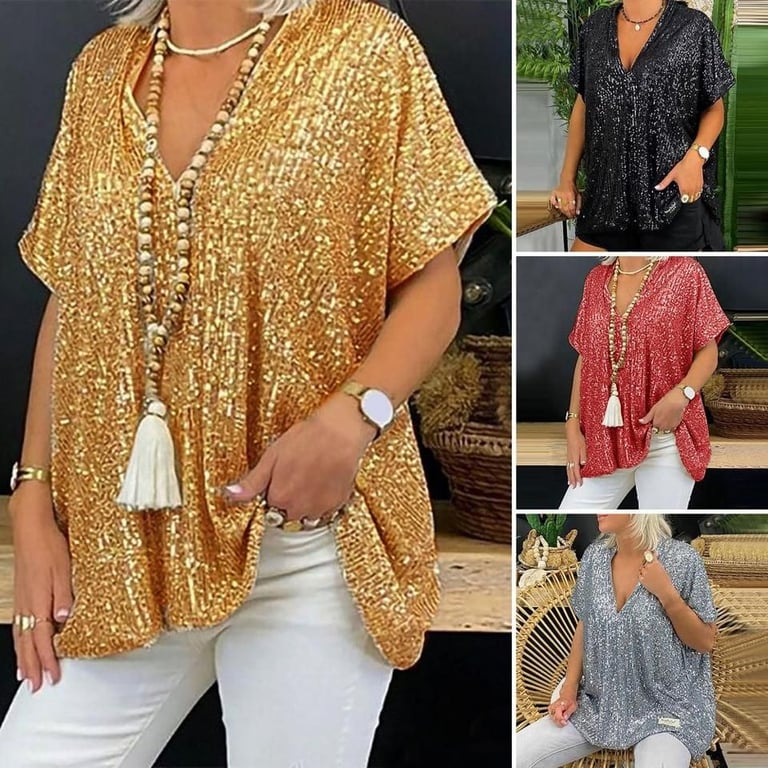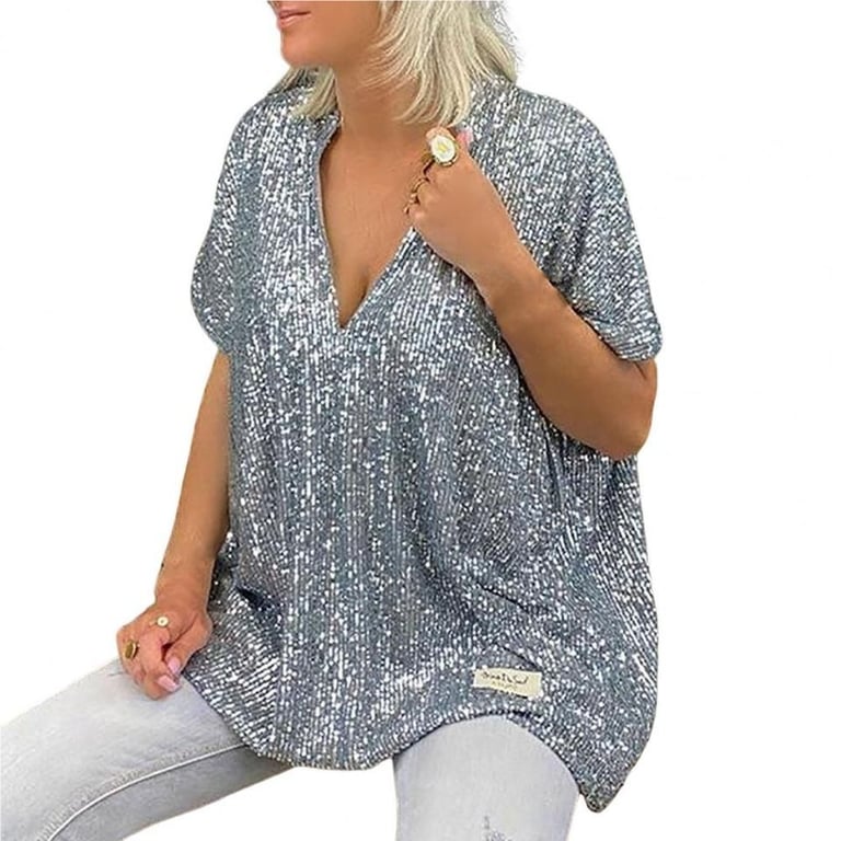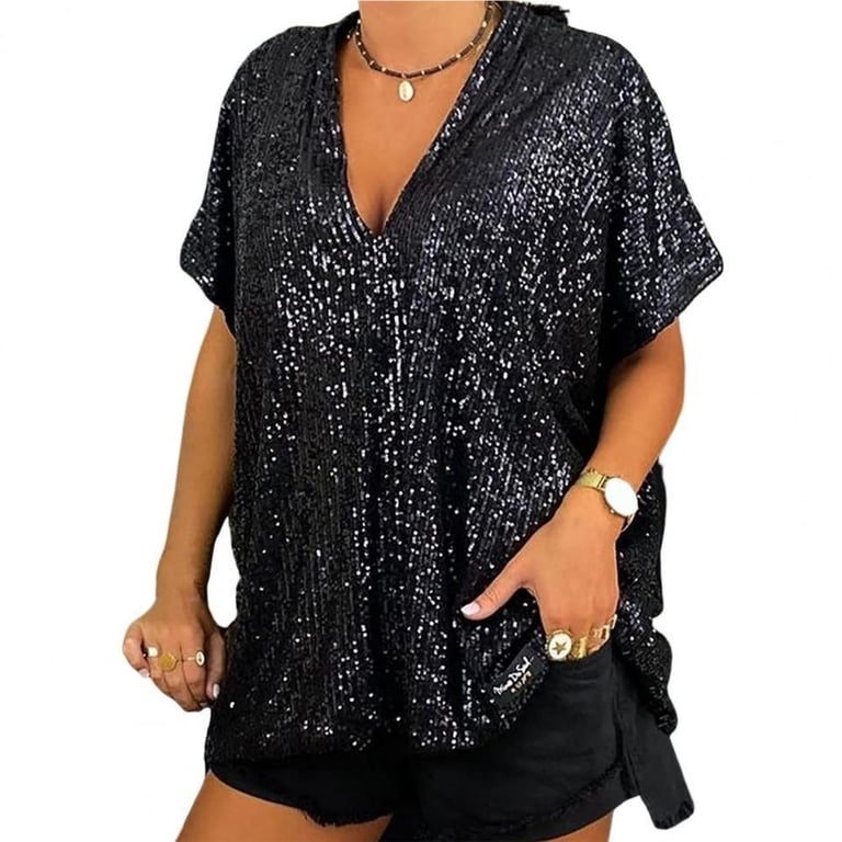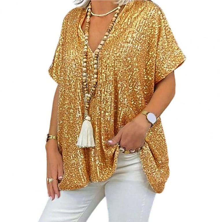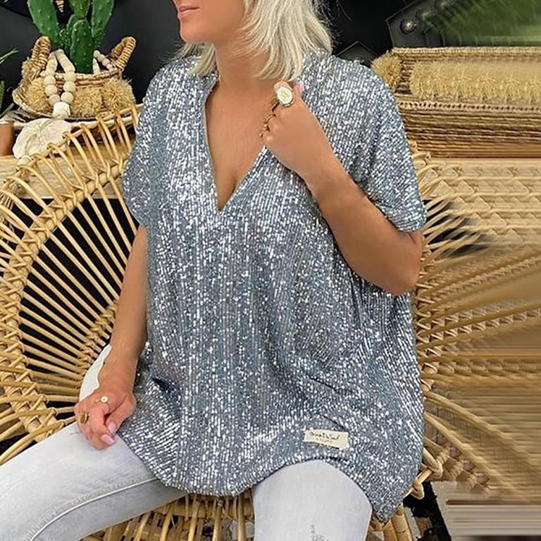 Camisa de mujer de tendencia con lentejuelas y manga corta Eloise