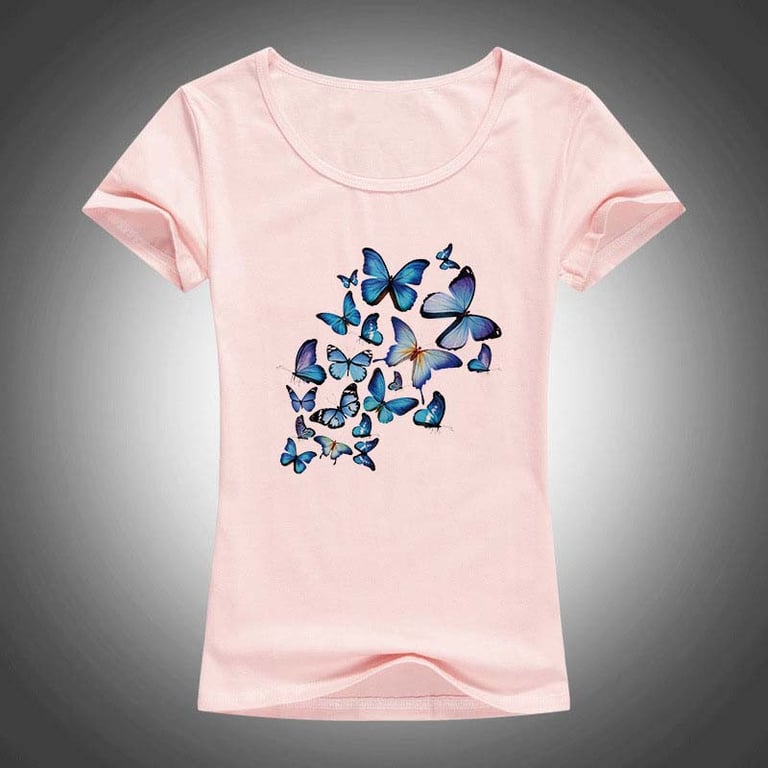 Estilosa camiseta de mujer con mariposas, ideal para primavera y verano. La agradable combinación de colores iluminará todo el atuendo y te verás realmente genial. Prepárate para la temporada 2025.