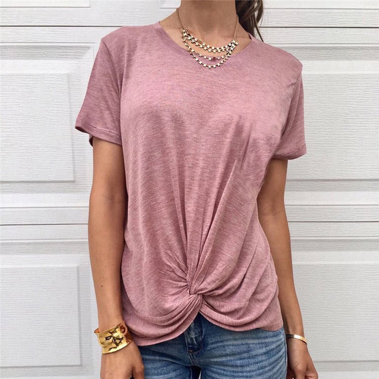 Camiseta de mujer de manga corta y escote redondo. Corte holgado con detalle de nudo en la parte delantera. Disponible en varios colores.