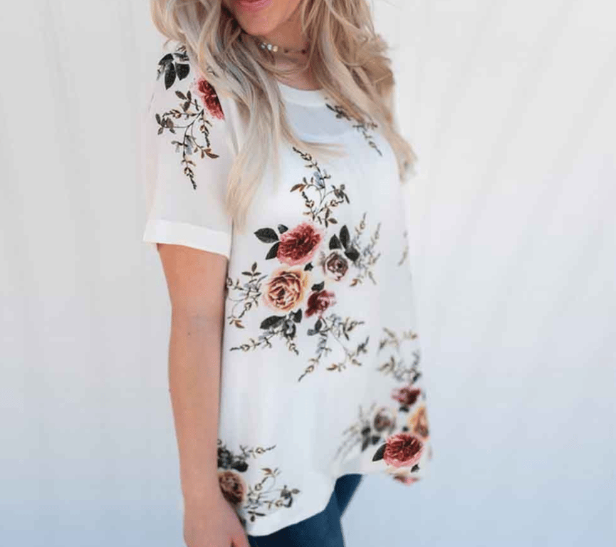• Etiquetas: flores, camiseta floral de mujer, ropa de mujer, ropa de verano