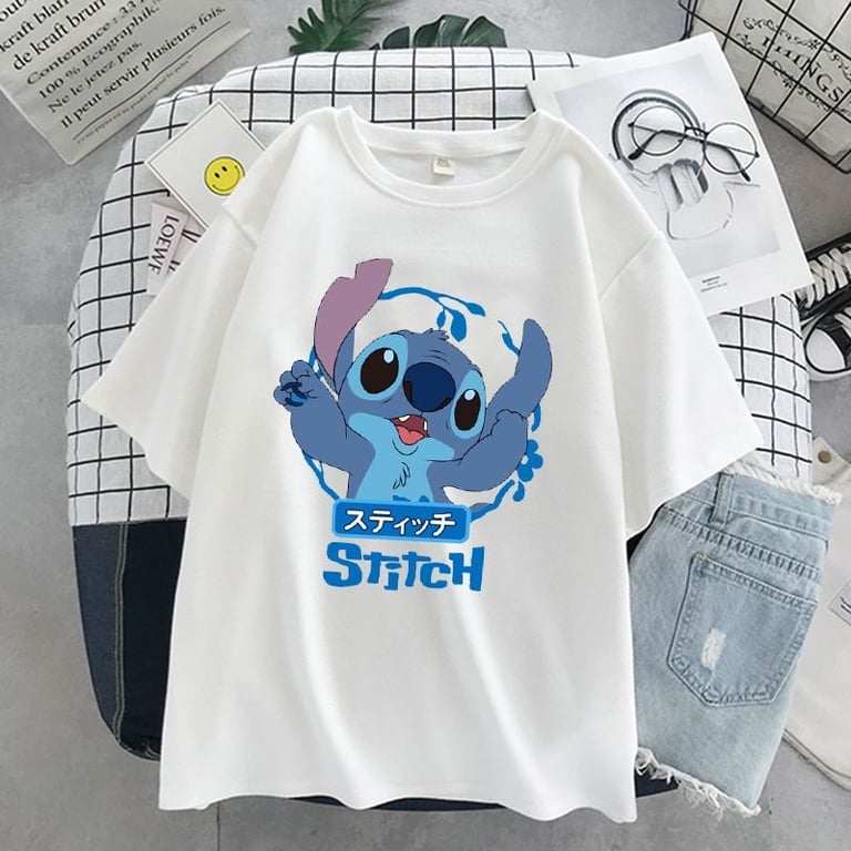 Camisa de mujer de manga corta con estampado de Stitch Fina