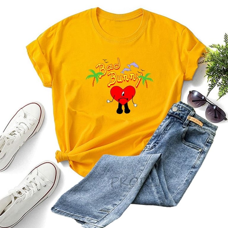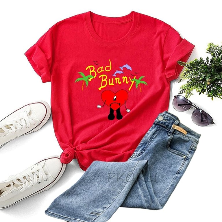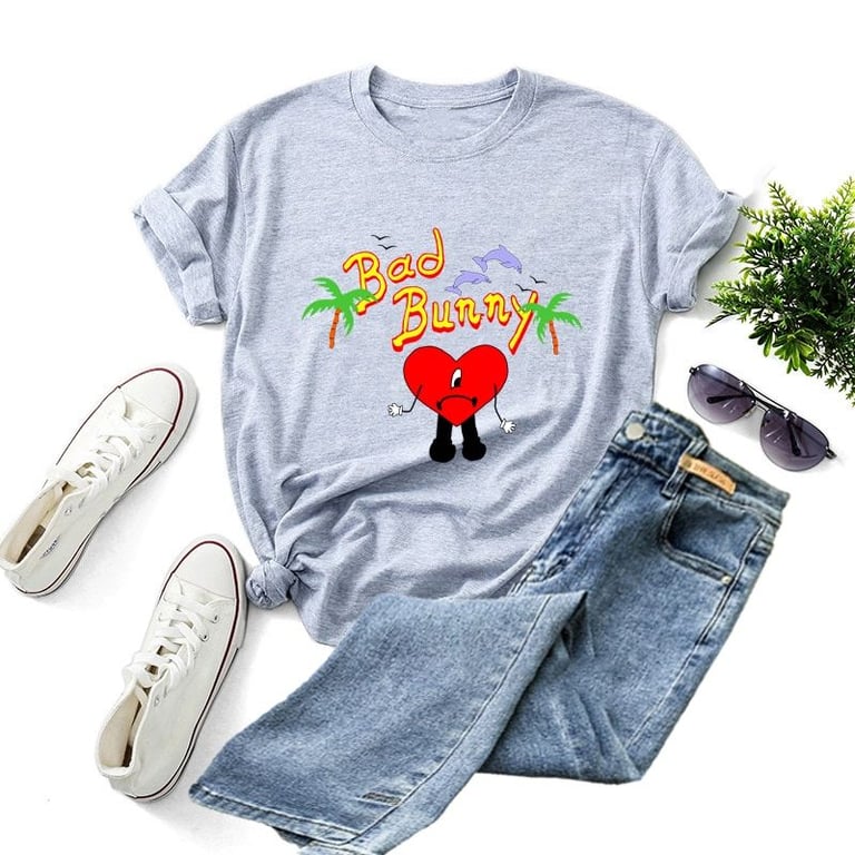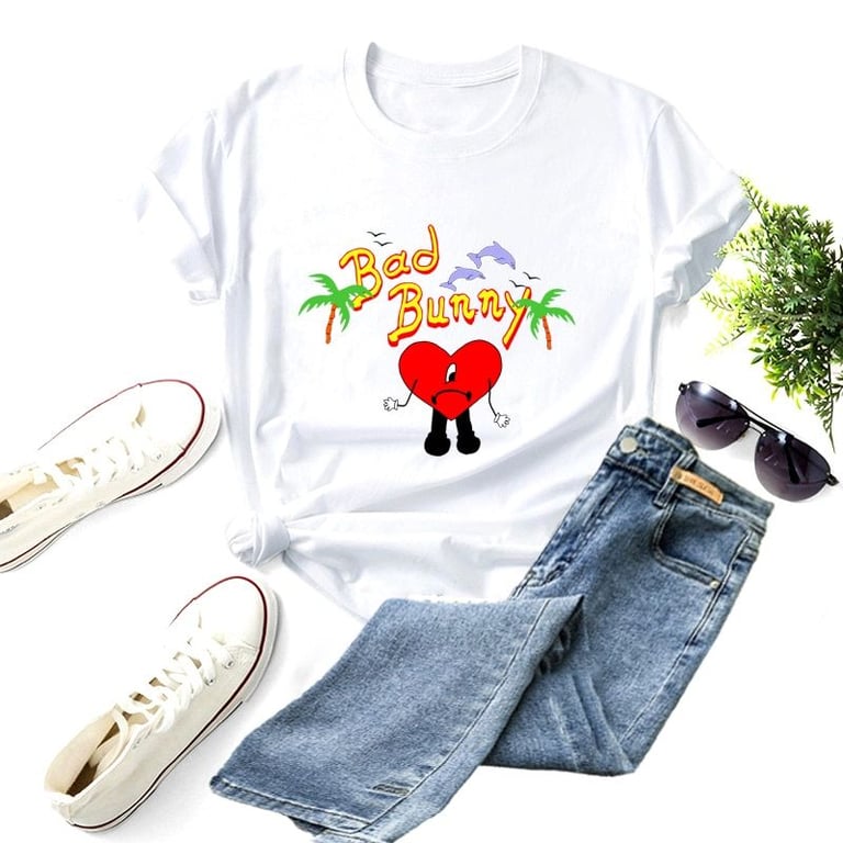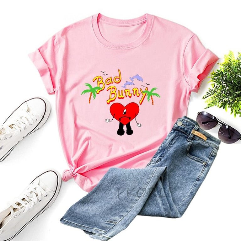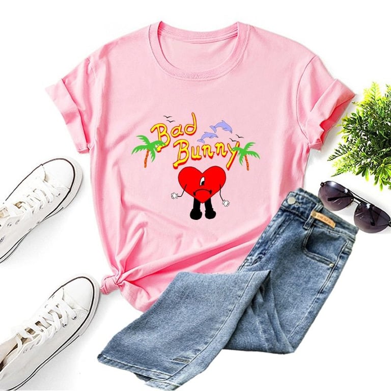 Camisa de tendencia para mujer con manga corta y estampado de corazones.