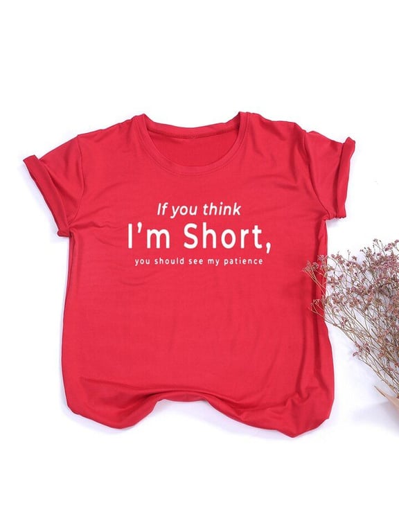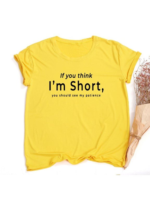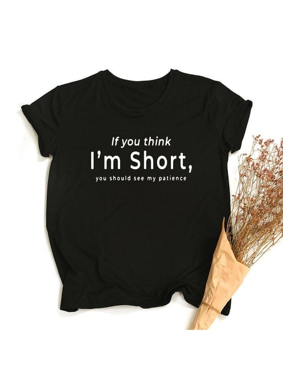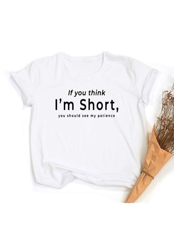 Camiseta de tendencia para mujer con manga corta y estampado “Si piensas que soy baja, deberías ver mi paciencia.”