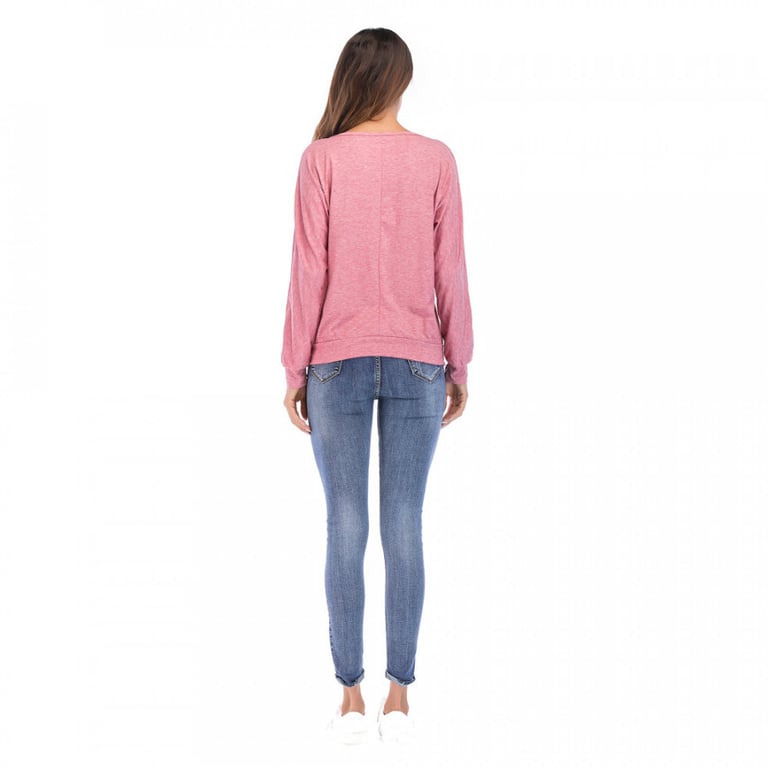 Camisa de mujer de estilo casual con mangas largas y escote redondo, adornada con botones discretos. Disponible en dos variantes de color.